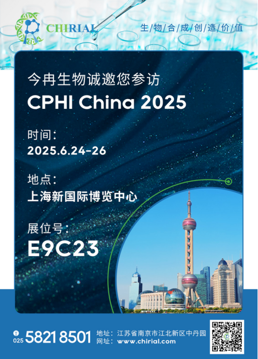 6月24日至6月26日今冉生物在上海新国际博览中心(浦东)与您相聚CPHI China 2025,届时欢迎您的莅临,并期待与您面对面沟通交流!